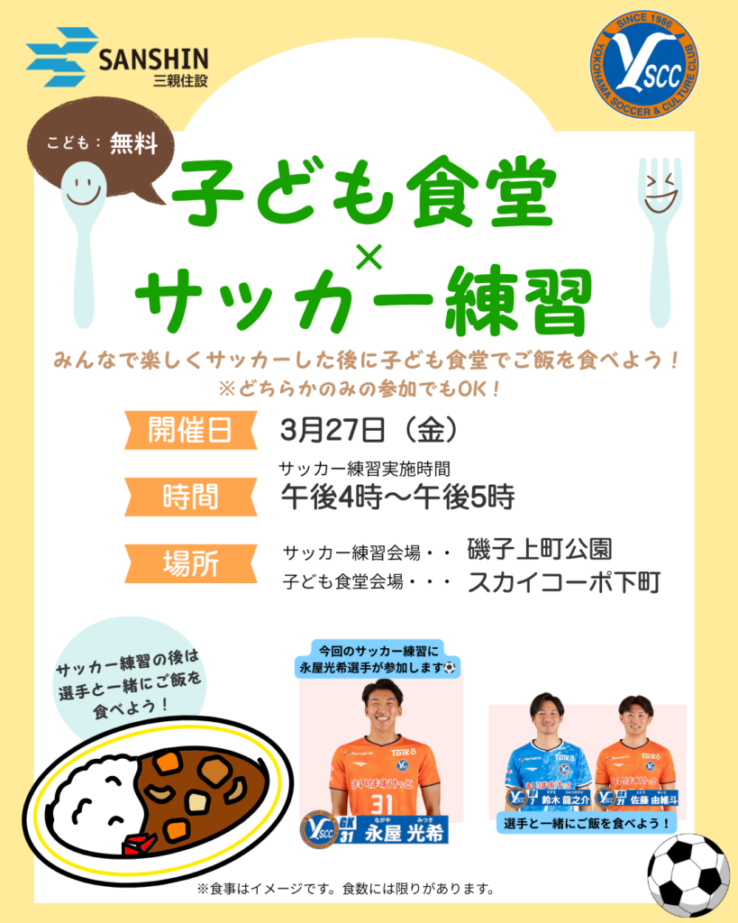 子ども食堂&サッカー練習 お知らせ