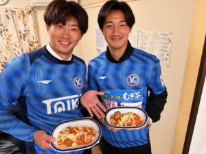 Y.S.C.C の佐藤選手と鈴木選手も参加してくださり、子どもたちと一緒に食事をしながら交流しました